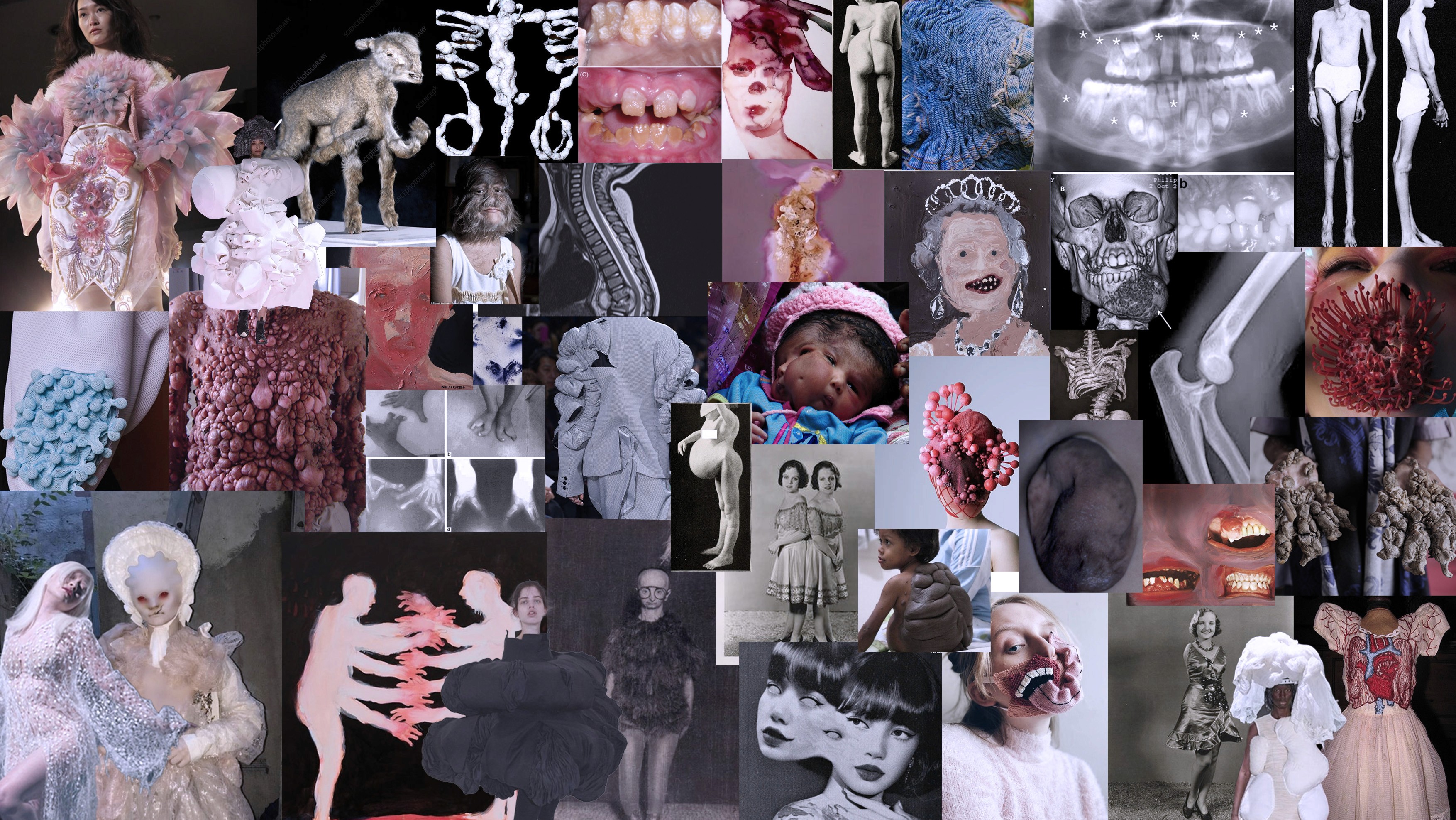 Medical archives, real photos like tomographies and ugly art to portray the fear of deformities,